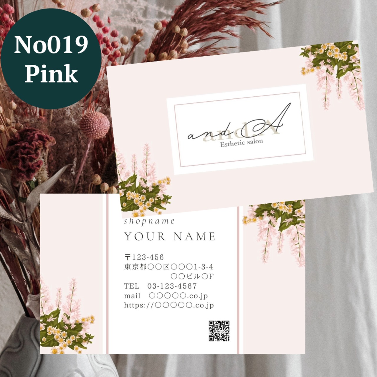 可愛いイラストと淡いニュアンスカラーがおしゃれな名刺